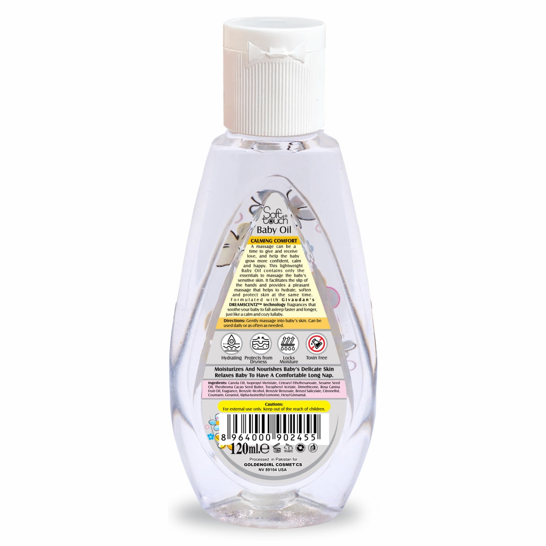 A massage can be a time to give and receive love and help the baby grow more confident, calm, and happy. This lightweight Baby Oil contains only the essentials to massage the baby's sensitive skin. It facilitates the slip of the hands and provides a pleasant massage that helps to hydrate, soften and protect skin at the same time. Formulated with Givaudan's DREAMSCENTZTM technology fragrances that soothe your baby to fall asleep faster and longer, just like a calm and cozy lullaby.