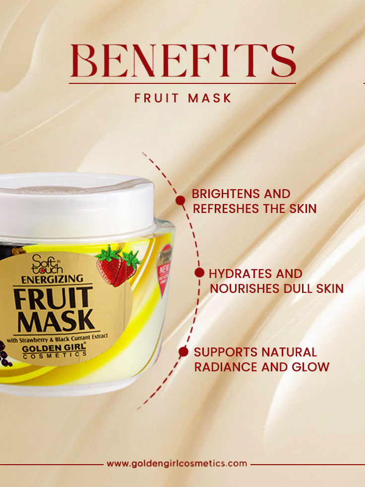 The Soft Touch Energizing Fruit Mask is a refreshing, light cream-gel formula designed to give tired, lackluster skin a fast, radiant refresh in just five minutes. This mask is concentrated with natural extracts from Strawberry and Black Currant, rich in Vitamin C, antioxidants, and essential nutrients. It works to improve the skin's resistance to environmental damage, fight the appearance of fine lines and wrinkles, and maintain skin elasticity for a healthier, more vibrant complexion.
