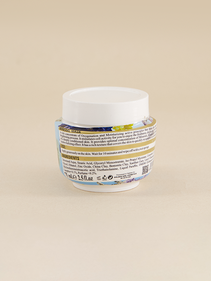 Golden Girl Mineral Mask is a rich concentrate of oxygenating and moisturizing active principles that repair the skin while improving its brightening process. It stimulates cell activity for freshness, purity, luminosity, and softness of a deeply conditioned skin. It provides an optimal concentration of minerals, vitamins, and Isotonic ingredients for the hydro-vitalizing effect. It has a rich texture that covers the skin to quickly recuperate its elasticity and softness.