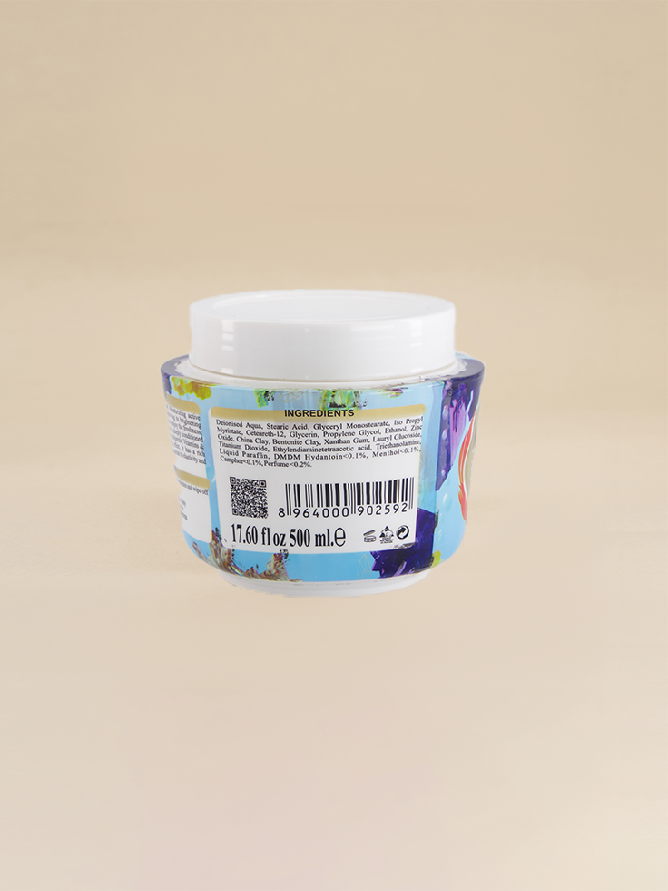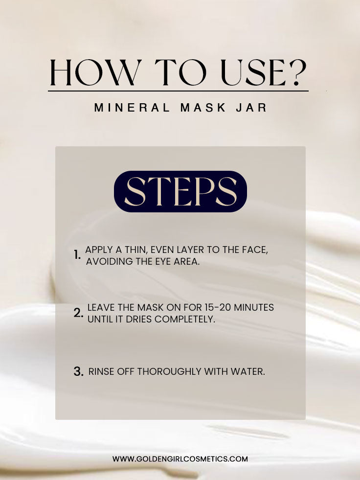 ⦁ Apply a generous amount of the mineral mask cream over your entire face (or body area).