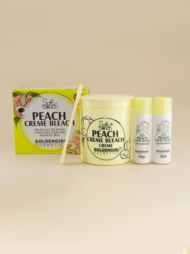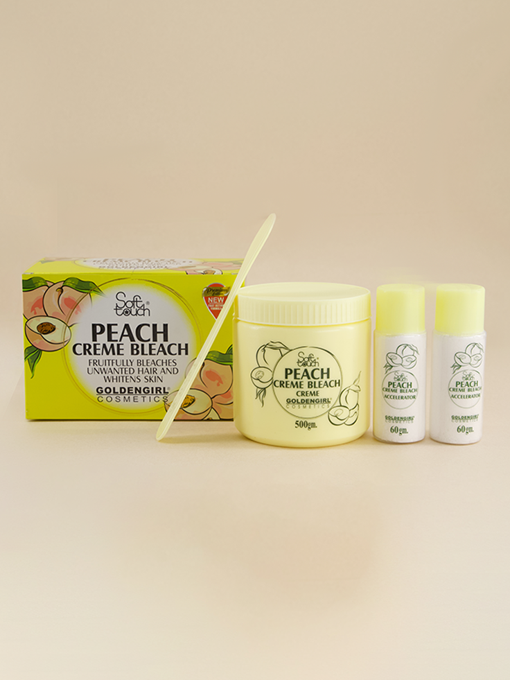 Golden Girl Peach Crème Bleach fruitfully bleaches unwanted hair and brightens the face and body skin. It diminishes the appearance of dark spots, also prevents skin from being tanned due to sun rays. Peach crème bleach hydrates the dull and dry skin and leaves the skin smooth, hair pale, soft and glowing.