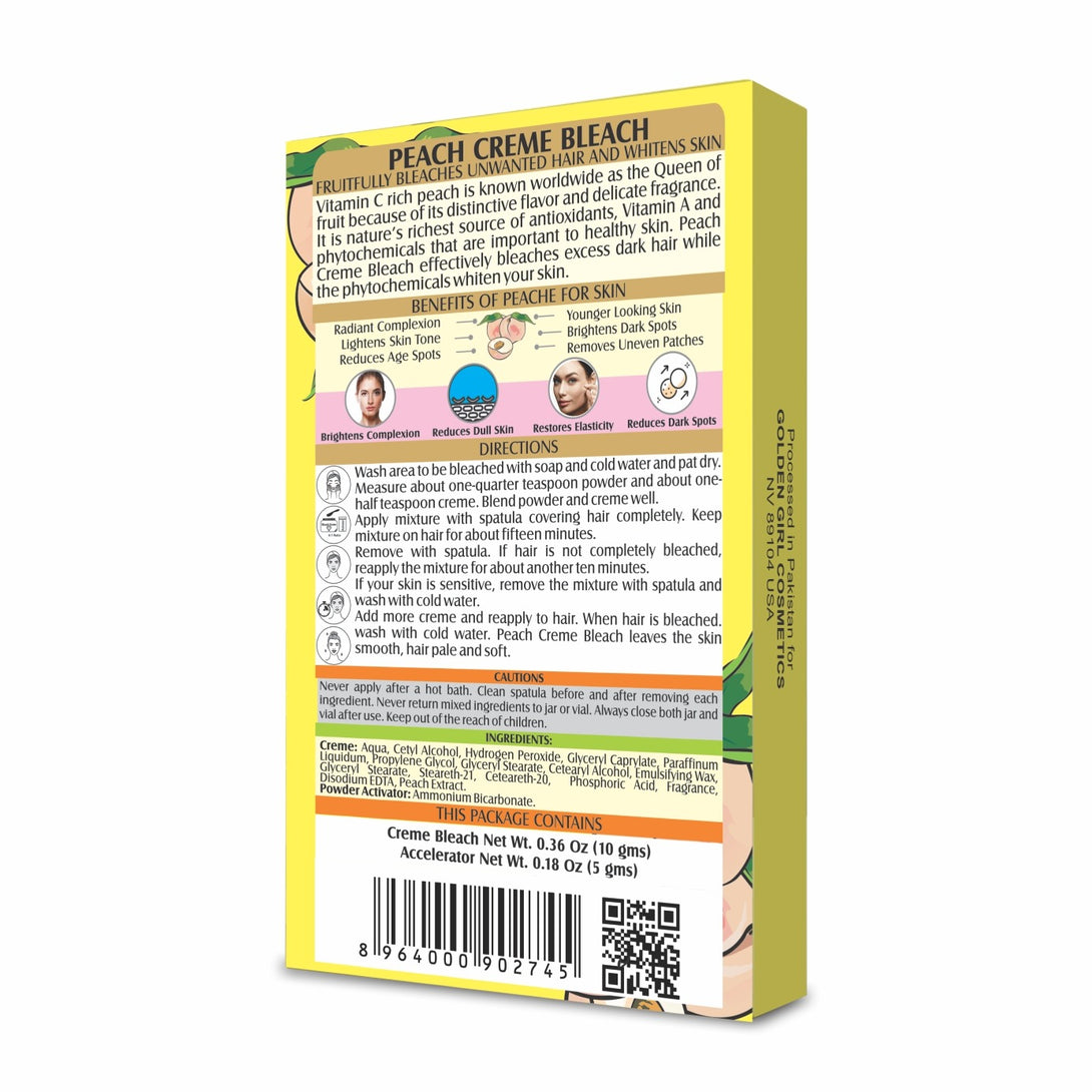 Golden Girl Peach Crème Bleach fruitfully bleaches unwanted hair and brightens the face and body skin. It diminishes the appearance of dark spots, also prevents skin from being tanned due to sun rays. Peach crème bleach hydrates the dull and dry skin and leaves the skin smooth, hair pale, soft and glowing.