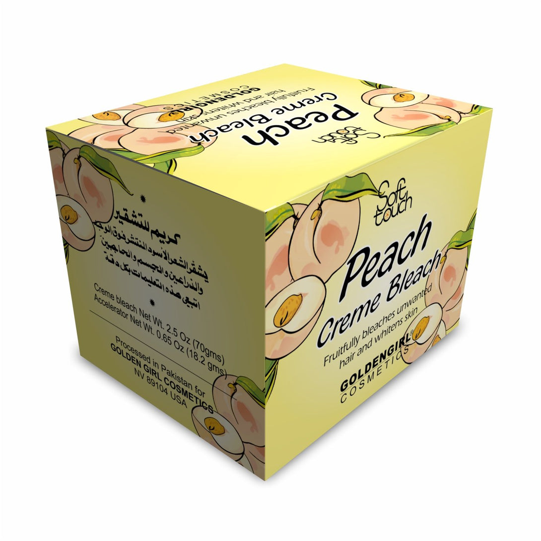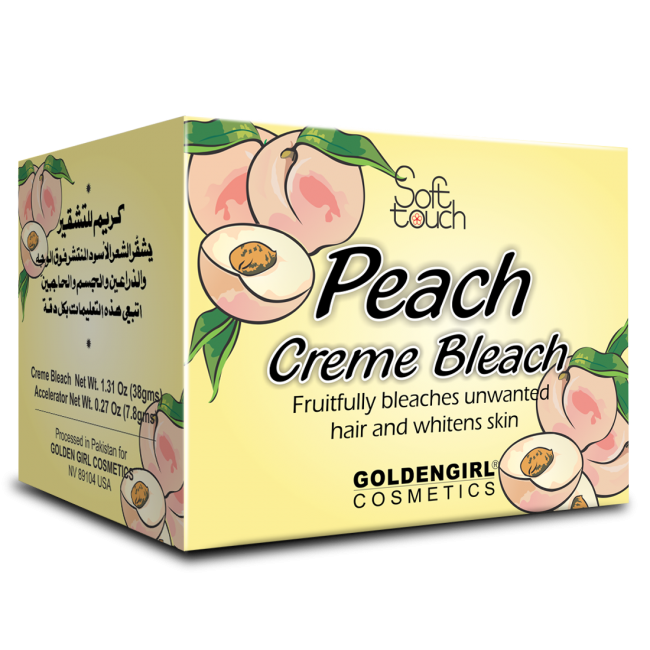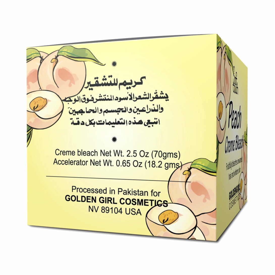 Golden Girl Peach Creme Bleach fruitfully bleaches unwanted hair and brightens the face and body skin. It diminishes the appearance of dark spots, also prevents skin from being tanned due to sun rays. Peach creme bleach hydrates the dull and dry skin and leaves the skin smooth, hair pale, soft, and glowing.