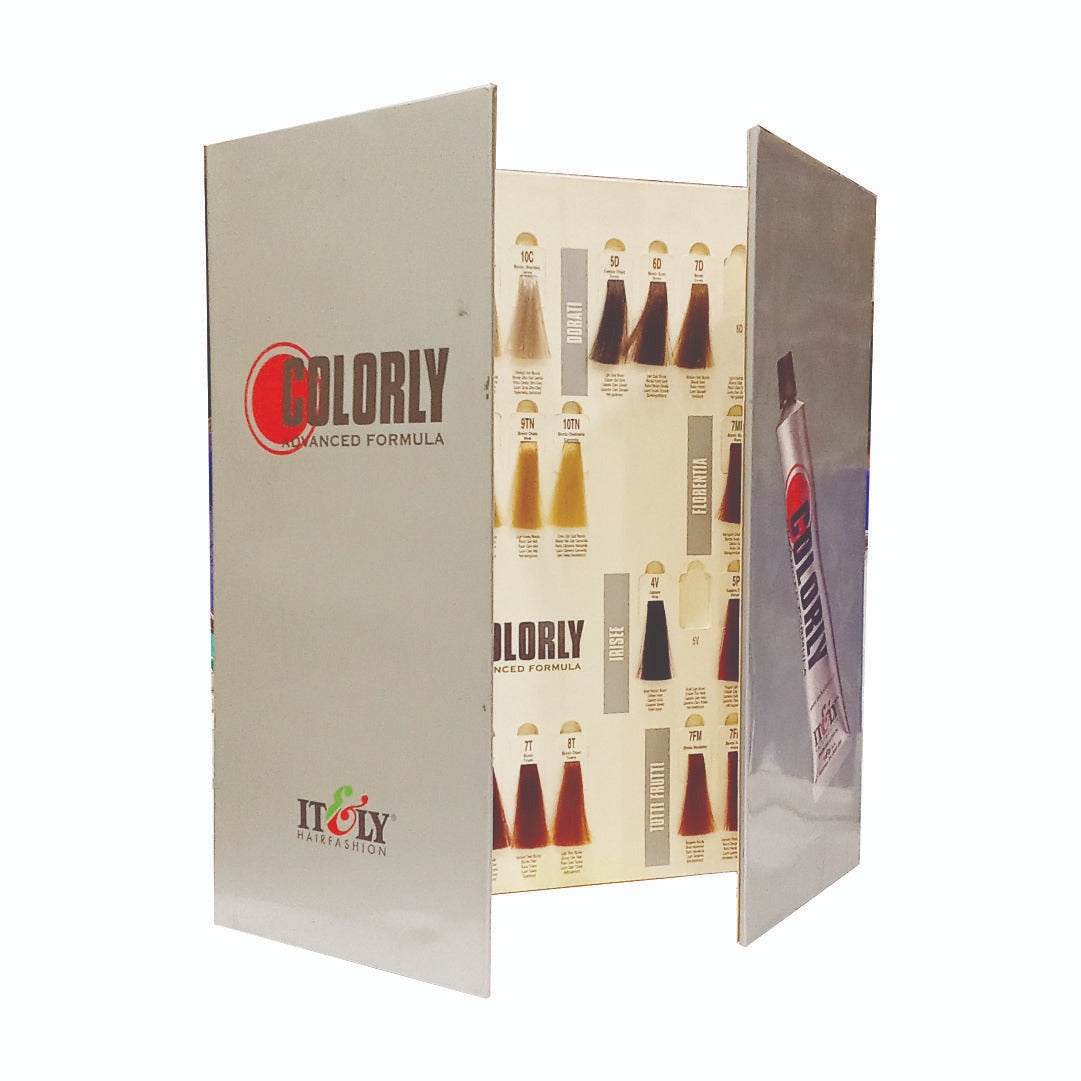 A color shade card is essentially a color palette of all the different shades available for a particular color brand. It is usually a small booklet that displays swatches of various colors, each labelled with a code or name .