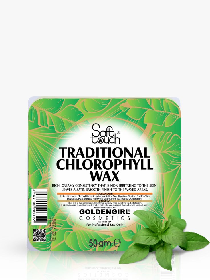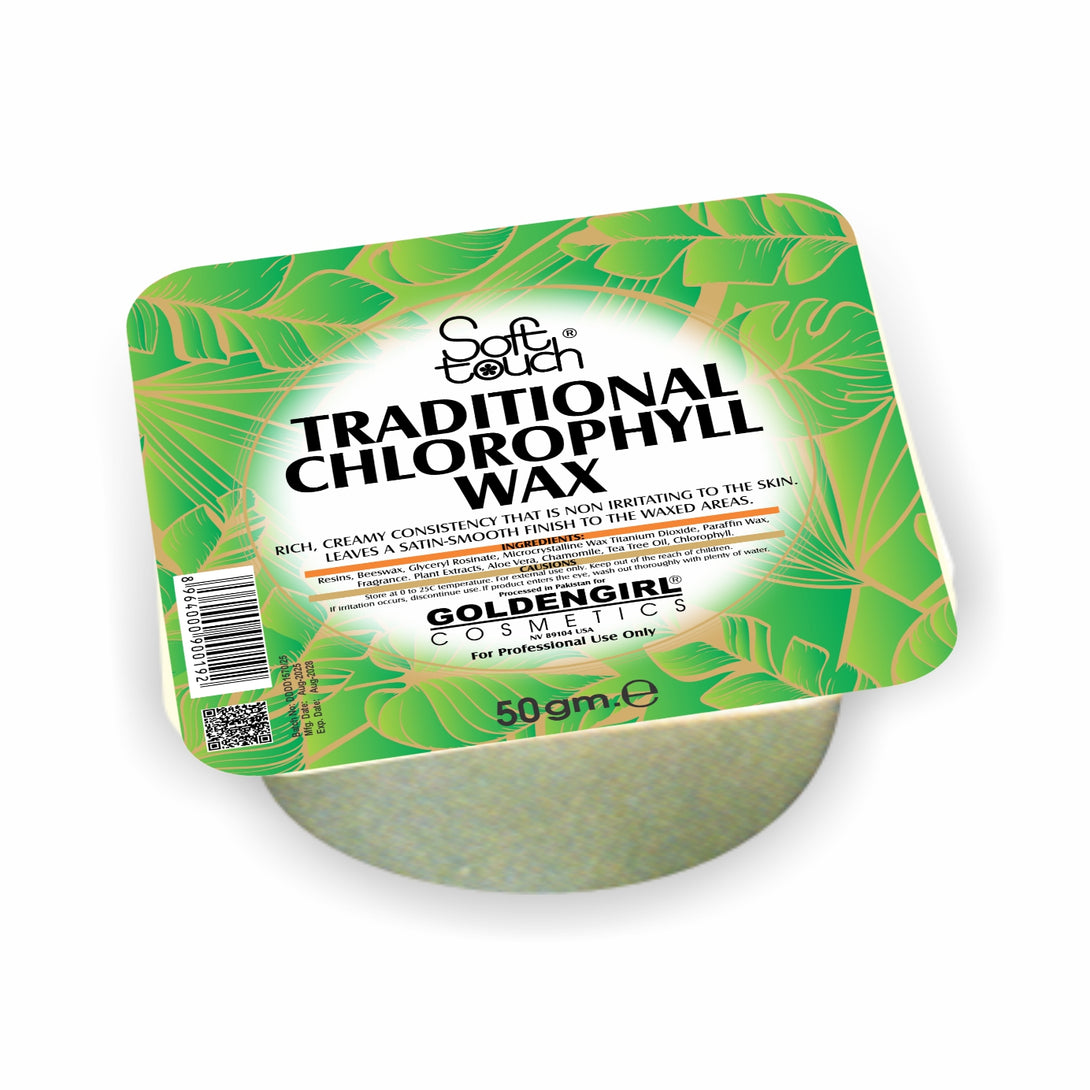 Golden Girl Traditional Chlorophyll Wax is prepared completely with natural herbs and beeswax that prevent rashes. A rich, creamy consistency that is non-irritating to the skin, leaves a satin-smooth finish to the waxed areas. Chlorophyll the green matter in leaves protects the skin from all reactions and makes the skin soft and smooth. No paper or cloth is used in its applications.