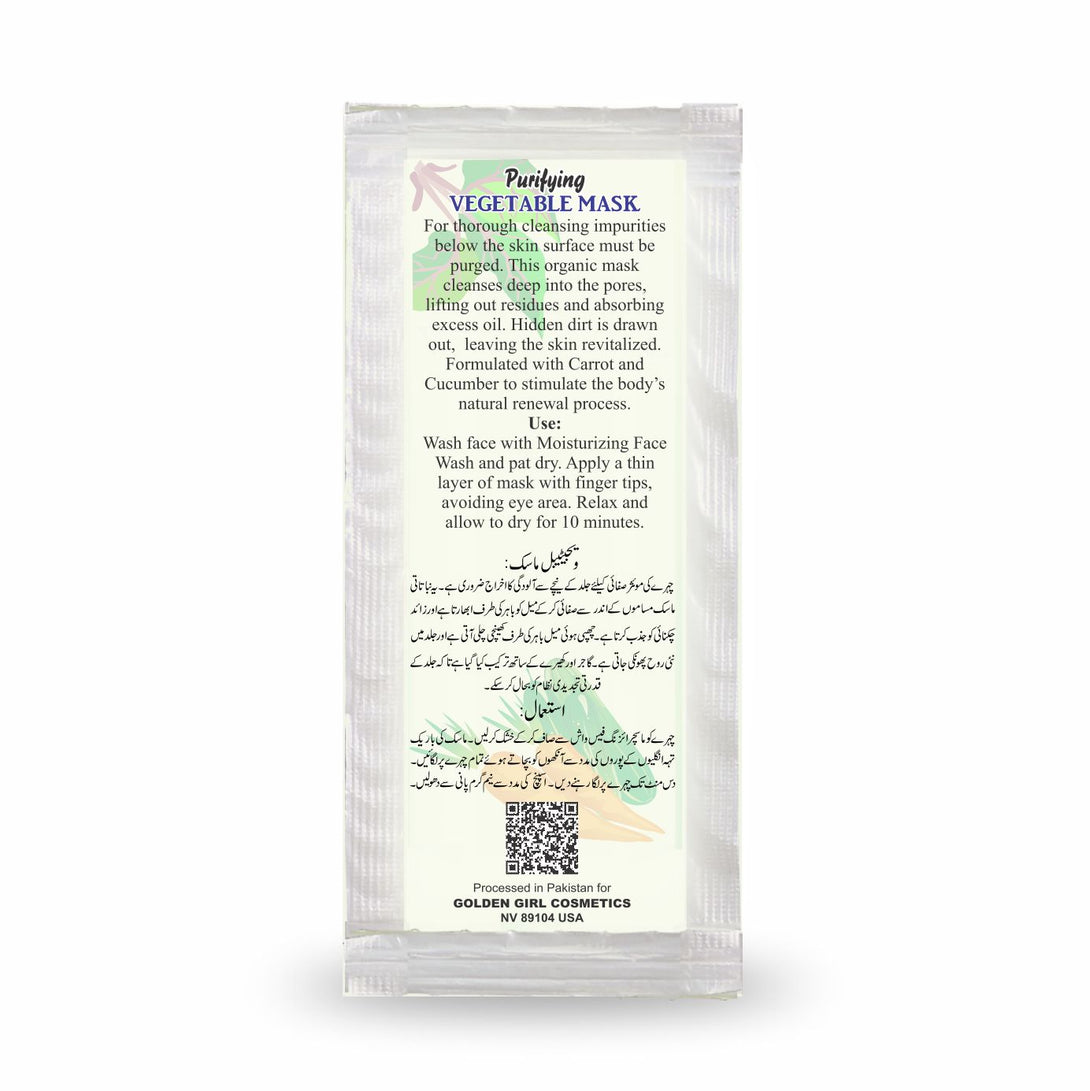 Vegetable Mask: For thorough cleansing impurities below the skin surface must be purged. This organic mask cleanses into the pores-lifting out residues and absorbing excess oil. Hidden dirt is drawn out, leaving the skin revitalized. Formulated with Carrot and Cucumber to stimulate the body's natural renewal process.